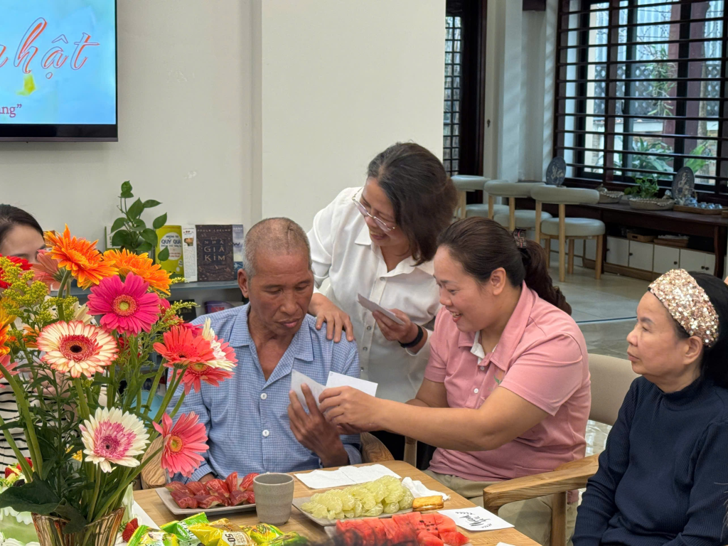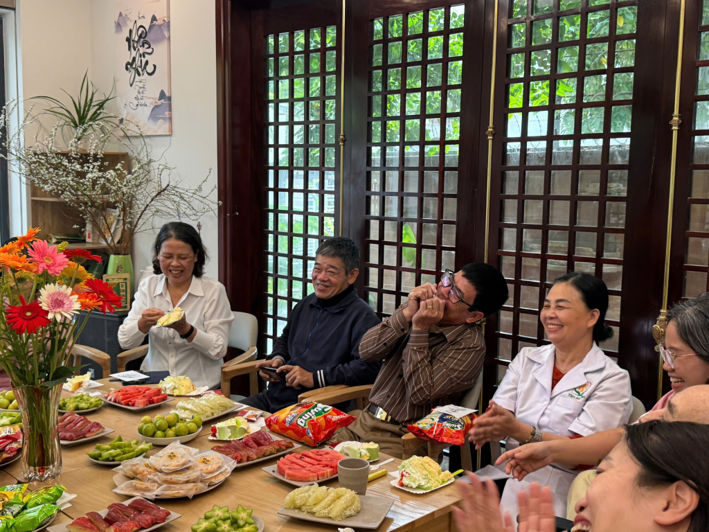Bánh sinh nhật, hoa tươi, hoa quả và trà được cán bộ nhân viên của trung tâm tự tay chuẩn bị, thể hiện sự quan tâm, chu đáo và tình cảm trân trọng dành cho các ông bà cũng như đồng nghiệp. Mỗi chi tiết nhỏ đều được chăm chút để mang đến một buổi sinh nhật nhẹ nhàng nhưng trọn vẹn yêu thương.