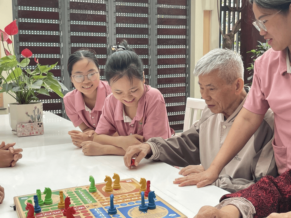 Tại Dưỡng lão Tâm An Nhiên, mỗi hoạt động vui chơi đều được tổ chức với mong muốn mang lại niềm vui và chăm sóc sức khỏe tinh thần cho các ông bà. Trong đó, cờ cá ngựa – một trò chơi quen thuộc – luôn tạo nên sự hứng khởi và gắn kết đặc biệt.