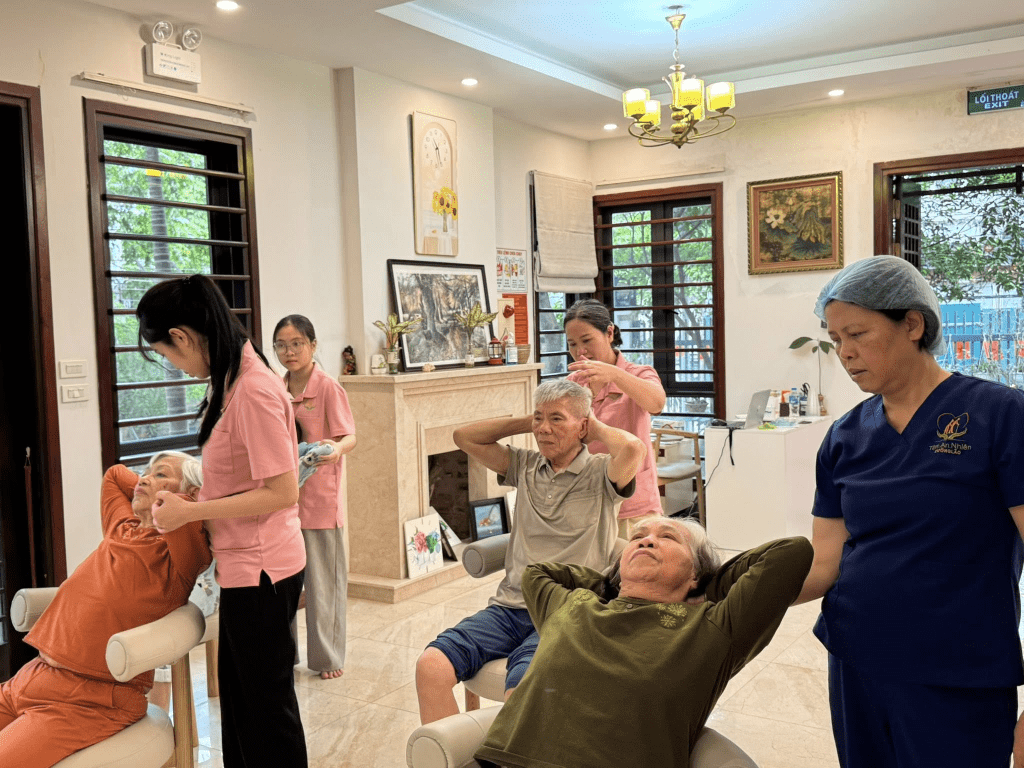 Trong không gian yên bình của buổi sáng, tiếng trò chuyện rôm rả, những lời động viên nhẹ nhàng từ nhân viên đã tạo nên một bầu không khí ấm áp. Nơi đây, ông bà không chỉ tập luyện mà còn cảm nhận rõ sự quan tâm, sẻ chia và yêu thương trong từng khoảnh khắc. 🤝