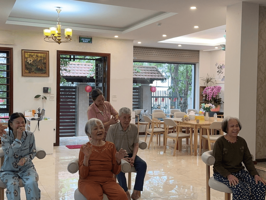 Không dừng lại ở đó, sau mỗi buổi tập, đội ngũ chăm sóc sẽ theo dõi và đo huyết áp để đảm bảo an toàn cũng như đánh giá hiệu quả luyện tập. Những chỉ số nhỏ ấy chính là cách Tâm An Nhiên lắng nghe và chăm sóc sức khỏe của từng ông bà một cách tận tâm mỗi ngày.